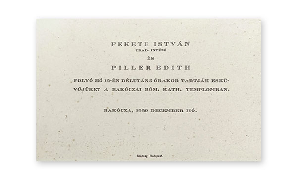 Április hónap műtárgyának Fekete István és Piller Edith esküvői meghívóját választotta a múzeum.