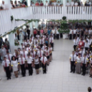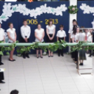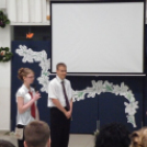 Az Erdősné Fedeles Zita által összeállított ünnepi műsorban kedves, iskolai fotókkal elevenítették fel az osztályközösségek egy-egy fontos mozzanatát, megidézve ezzel az elmúlt nyolc év derűs pillanatait. Befejezésül egy-egy sárga gerberával a kezükben felállva énekelték el közös dalukat, melyhez elérzékenyülve kapcsolódtunk be valamennyien, akik részt vettünk a ballagó nyolcadikosok búcsúzásán. Végül összekapaszkodva elvonultak ők is, mint annyian már, akik valaha beültek ennek az iskolának a padjaiba.