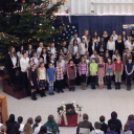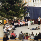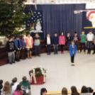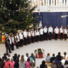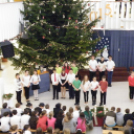 Az igazgatónő ünnepi gondolatai után az iskola tanulói közösen énekelték el a Kiskarácsony, nagykarácsony és a Mennyből az angyal karácsonyi dalokat.