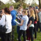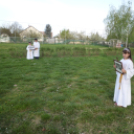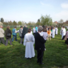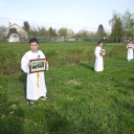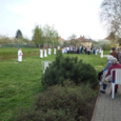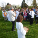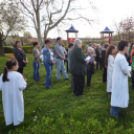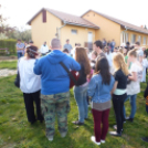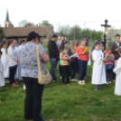 A Közösségi Ház udvarán állította fel a keresztúti állomásokat Tolnai Éva hitoktató. Minden képet egy-egy hittanos gyerek tartott a kezében. A vendégek gitárzenével, énekekkel kísérték a hagyományos szertartást, melyen sok hívő falubeli is részt vett. Aki egészségi állapota vagy valamilyen más ok miatt nem mehetett a többiekkel, székeken ülve figyelhette az imát.