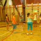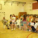 A 4. osztály és osztályfőnökük Patakiné Böjtös Erzsébet vidám hangulatot varázsolt a tornacsarnokba. A versekkel a nyarat idézték meg, a friss zene és tánc azt az örömet fejezte ki: szeptemberig nem kell suliba járni!